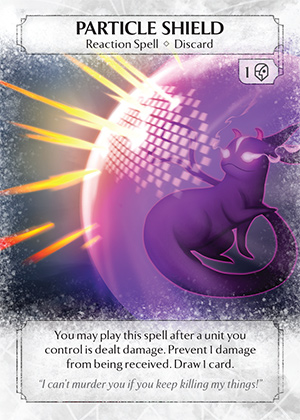 As long as you are in Illusion Particle Shield should be a consideration. Stopping a single point of damage is relevant every game. It allows possible counter swings, keeps the little units happy, and occasionally blows out removal spells. Swift Messenger has a similar scope. I feel like at this point it should be called spider bait.