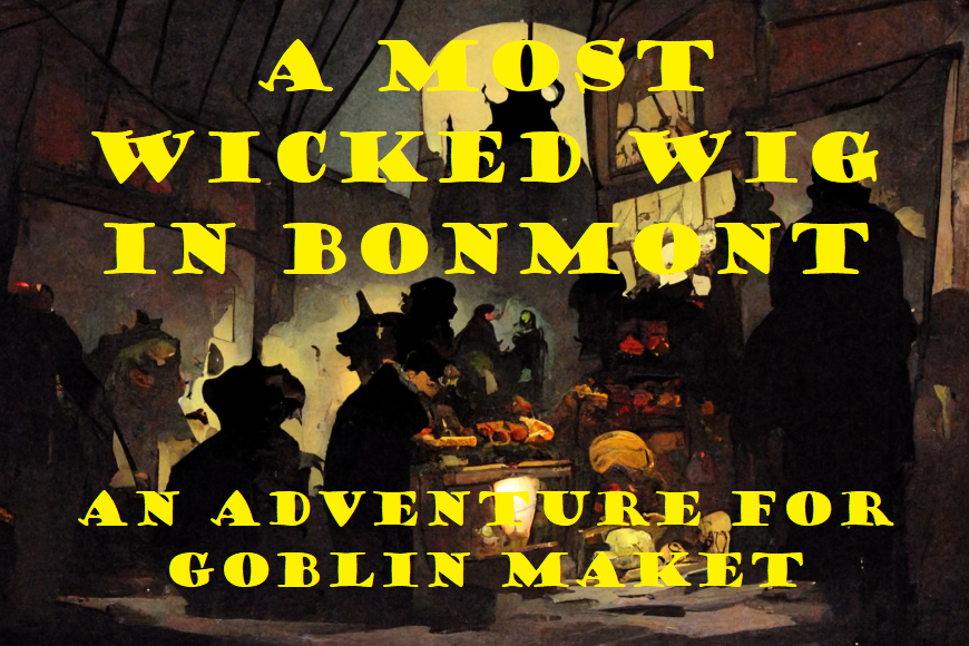 A Most Wicked Wig in Bonmont is a hunt for Goblin Market now on sale on kickstarter. Goblin Market – Zinequest 4 by Gamenomicon — Kickstarter Suitable for two to four goblins with a wicked sense of humor.